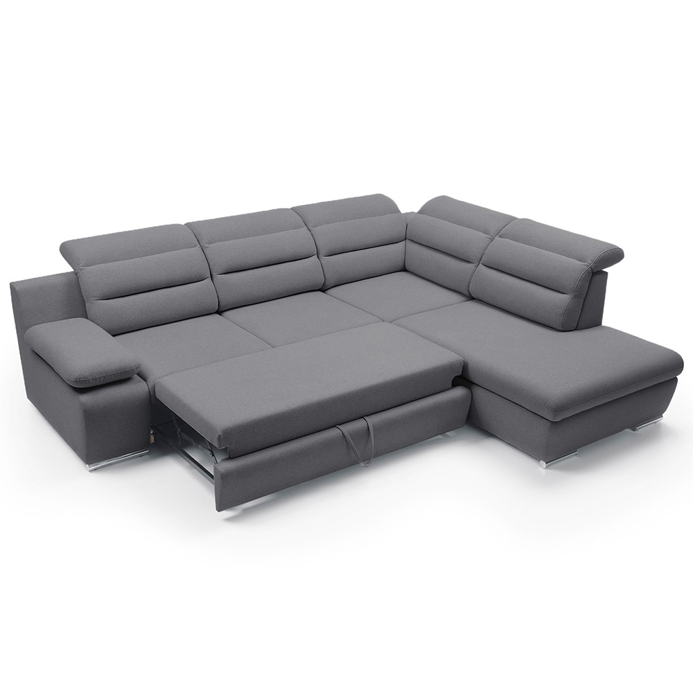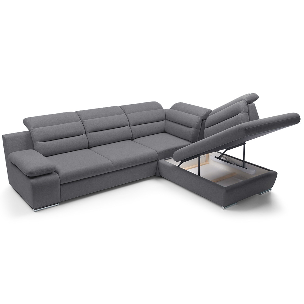 Sedací souprava Greco ve tvaru L nadchne každého, kdo hledá moderní a zároveň pohodlnou sedačku. Greco Vám zajistí maximální odpočinek v obývacím pokoji. S polohovatelnými záhlavníky si nastavíte to pravé sezení. Nastavitelná je i područka na otomanu. Grego disponuje praktickým úložným prostorem pod otomanem a rozkladem pro příležitostné přespání. Sedák tvoří kombinace faliste pružin (vlnité) a kvalitní PUR pěny. Sed je středně tvrdý a pohodlný (ani moc tvrdý ani moc měkký). Záda jsou čalouněná a lze tak sedací soupravu umístit i do prostoru. Chromové nožičky dodávají sedací soupravě Greco elegantní vzhled. Sedací soupravu si u nás můžete objednat v levé i pravé variantě stejně tak si můžete vybrat ze vzorníku libovolnou tkaninu. Greco Vám doručíme ve dvou balíkách. Montáž je velice snadná a rychlá.