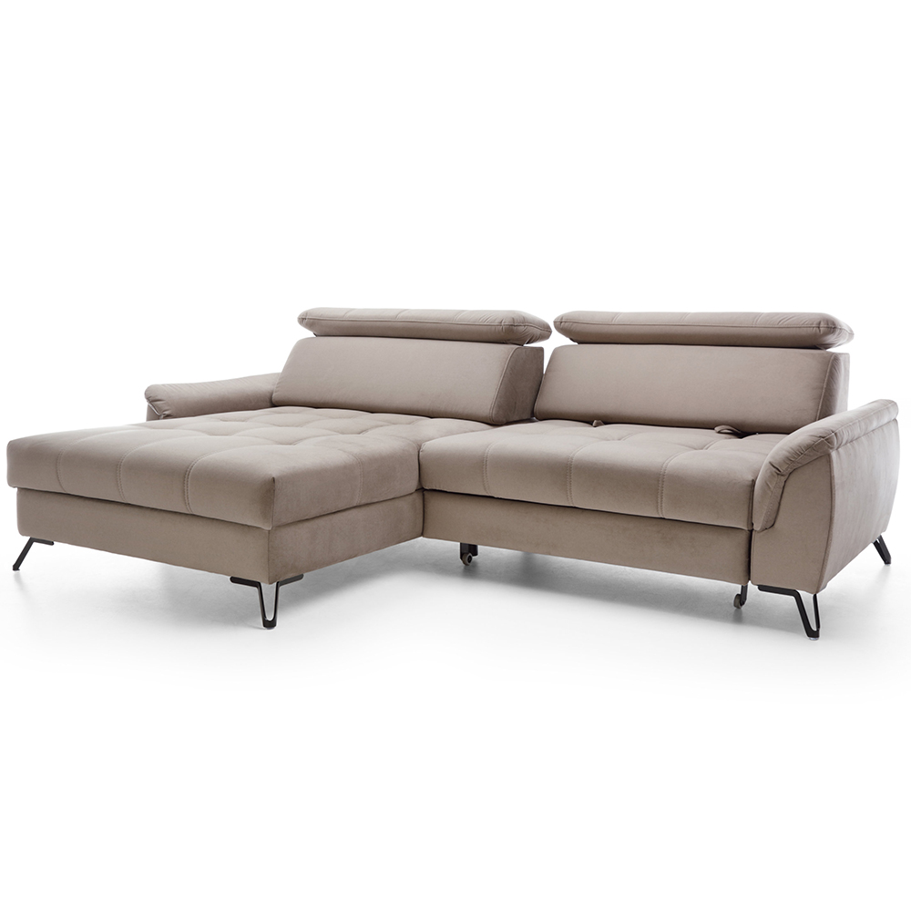 Sedací souprava PEDRO L 230x250 cm | LEVÁ | rozkládací + úložný prostor | polohovatelné záhlavníky | VÝBĚR TKANIN