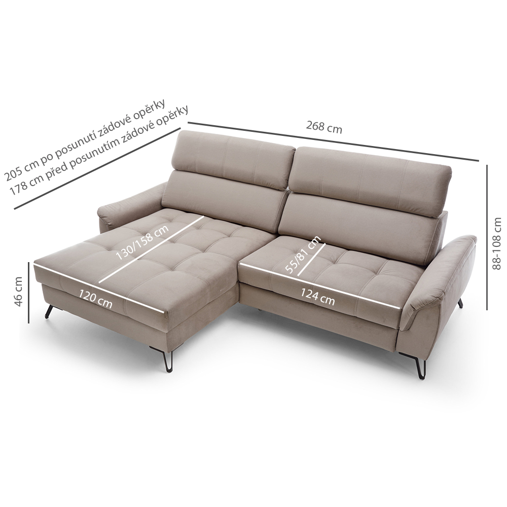 Sedací souprava LAGO 205x268 cm | rozkládací + úložný prostor | posuvné záda | VÝBĚR TKANIN