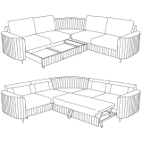 - PRAVÁ - rozkládání na pravé stravě a úložný prostor na levé straně (z pohledu proti sedačce)