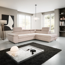Malá sedací souprava SLIM 179x235 cm | LEVÁ | 09 světle béžová | rozkládací + úložný prostor