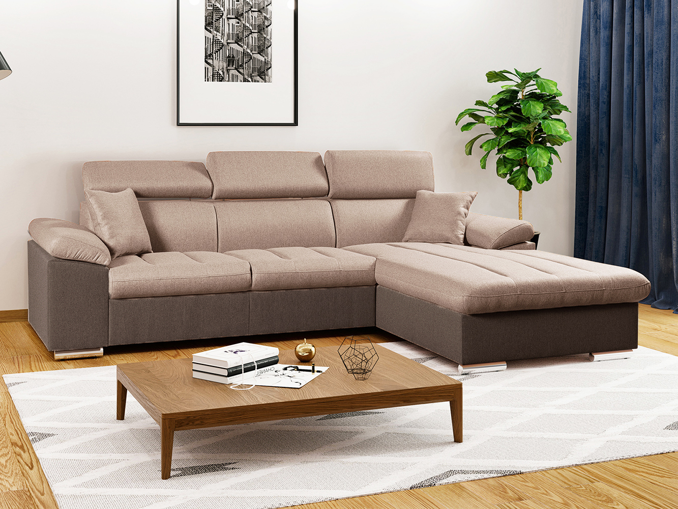 Sedací souprava PEDRO L 230x250 cm | LEVÁ | rozkládací + úložný prostor | polohovatelné záhlavníky | VÝBĚR TKANIN