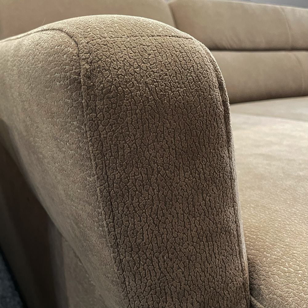 - Pozn.: Vzhledem k výrobním vlastnostem tkaniny, je možné, že z různých úhlů pohledu bude tkanina na jednotlivých částech čalouněného nábytku tvořit rozdílný výsledný odstín látky. Tento efekt tkaniny nelze reklamovat, je to dáno jejími vlastnostmi. Povrch tkaniny tvoří jemný vlas, díky čemuž je tato látka velmi příjemná na omak. Po přejetí rukou vlas změní směr a tak může dojít k tzv. mapování, které je v současné době v moderním designu velmi oblíbené.