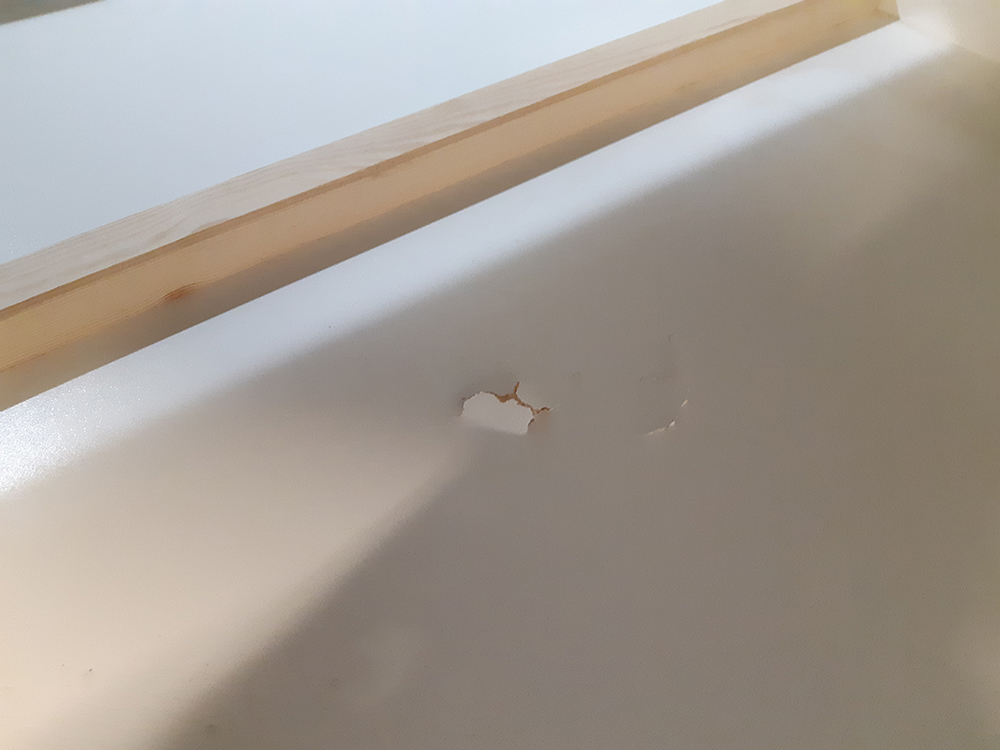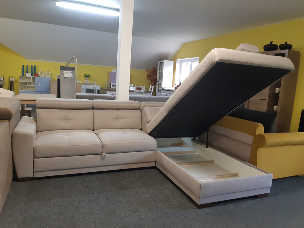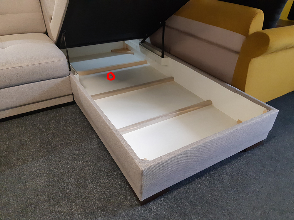 Pozn. jedná se o zboží, které bylo vystavené jako vzorek na prodejně: v úložném prostoru je v zadní části menší dírka (viz. přiložené fotky); tato vada je pouze estetická, nemá vliv na další funkce a používání sedací soupravy