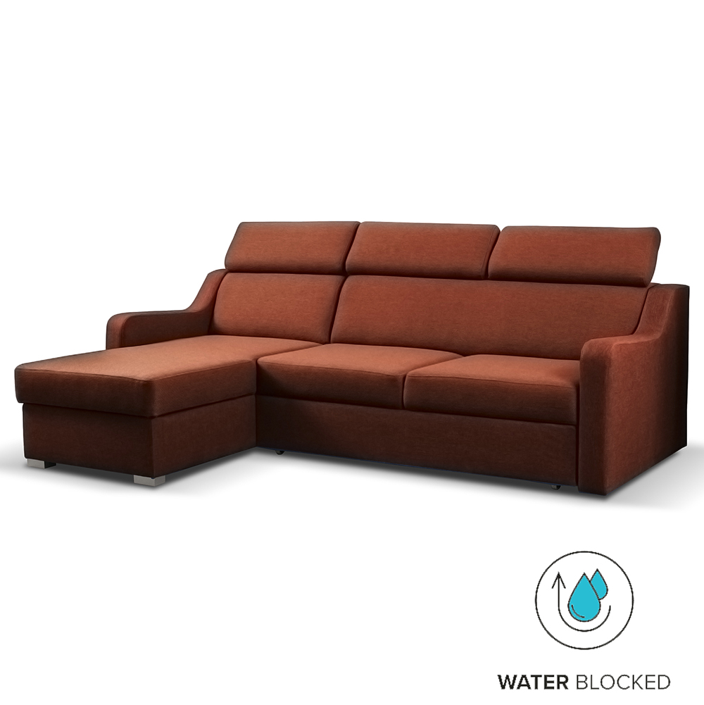 Sedací souprava GRECO MINI 278x185 cm | PRAVÁ | 20 středně hnědá WATER REPELLENT | rozkládací + úložný prostor