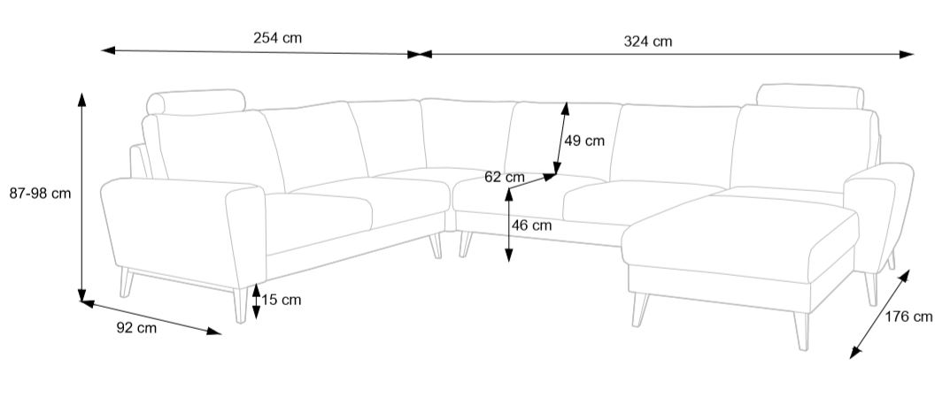 Hloubka otomanu se zádovou opěrkou | 254 cm |