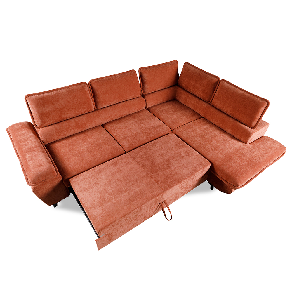MONTINA XL NEW je vybavena praktickým rozkládacím systémem "Delfin", který umožňuje snadnou a rychlou přeměnu sedačky na lůžko pro příležitostné spaní. Tento chytrý mechanismus umožňuje během několika vteřin vytvořit pohodlné místo pro přespání hostů nebo pro chvíle, kdy potřebujete více prostoru na relaxaci. Navíc je rozkládací část očalouněna stejnou potahovou látkou jako zbytek sedačky, což zaručuje estetický a jednotný vzhled i při rozložení.