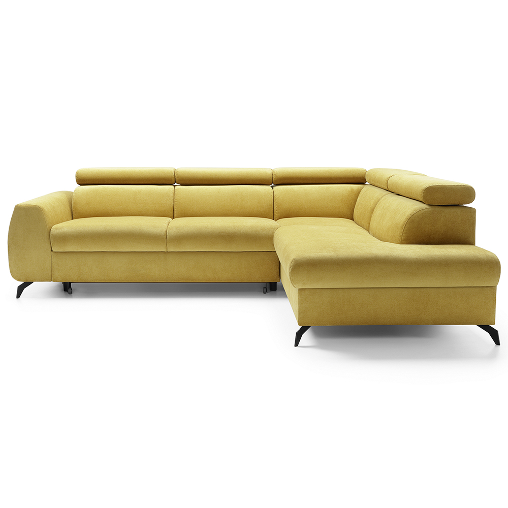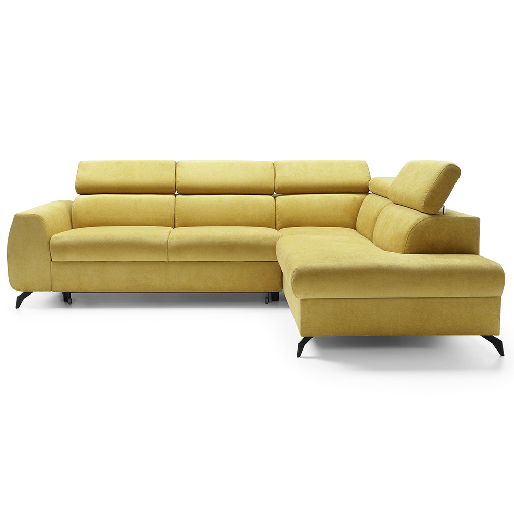 Kvalitní sedací soupravu Stille v moderním designu si zamilujete. Stille disponuje polohovatelnými záhlavníky, se kterými si nastavíte tu pravou polohu pro kvalitní odpočinek. Sedačka se snadno rozkládá pro příležitostné spaní a její součástí je i praktický úložný prostor pod otomanem. Sedačku Stille skvěle doplňují vysoké kovové nožičky v černém odstínu. Výplň sedáku tvoří kombinace kvalitní vysokoelastická pěny a faliste pružin. Stillo si u nás můžete objednat v libovolné látce ze vzorníku. Pokud byste se potřebovali poradit s výběrem tkaniny, neváhejte se nám ozvat. S výběrem Vám zajisté pomůže i náš průvodce tkaninami. Nábytek Vám dodáme v několika balících. Přejeteli si výnos či sestavení sedací soupravy, stačí tuto informaci sdělit dispečerovi, který Vás bude kontaktovat několik dní před doručením.
