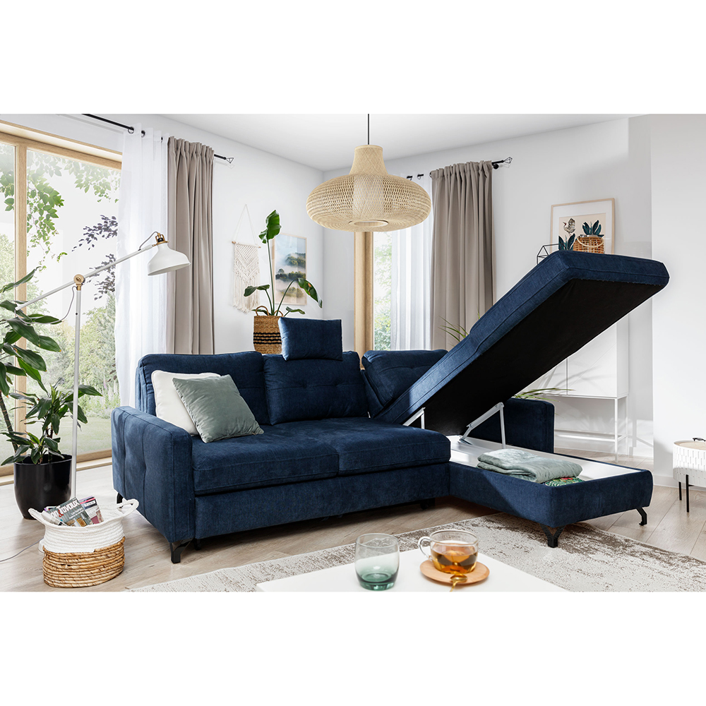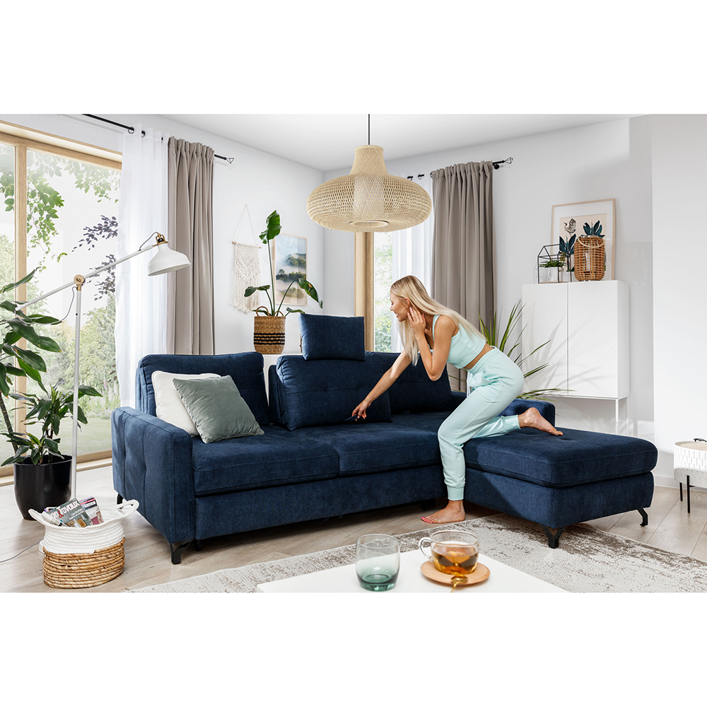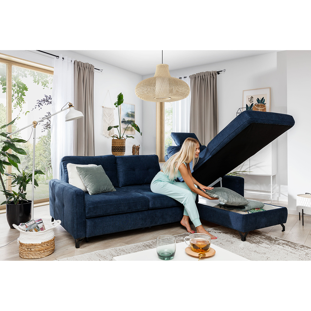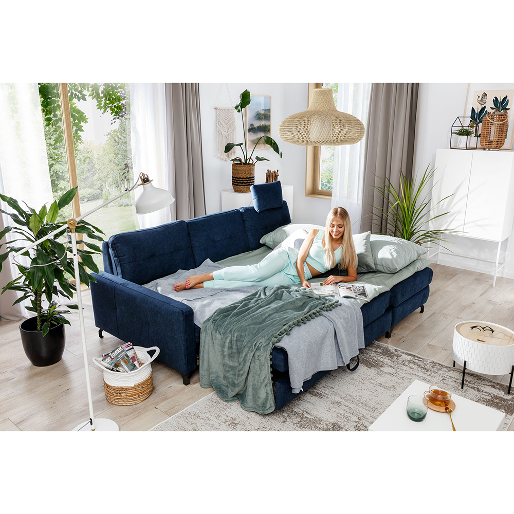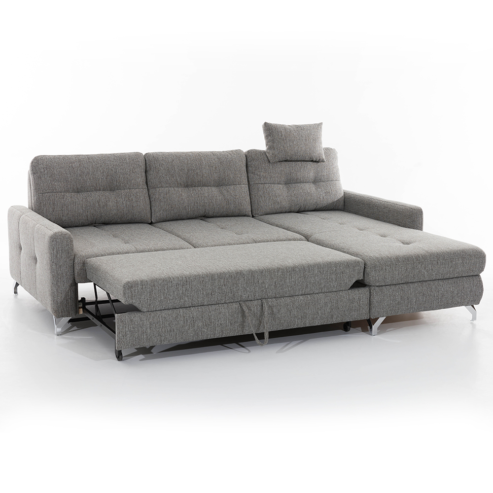 Sedací souprava Nawe je rozkládací. Sedačka je opatřena výsuvným mechanismem, který umožňuje snadné rozložení sedací části a vytvoření prostorného a pohodlného lůžka pro příležitostné spaní. Tato funkce je užitečná pro hosty nebo i v případě, že potřebujete více prostoru pro odpočinek. Výsuvná spací plocha je očalouněná standardní technickou tkaninou.