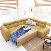 Sedák tvoří kombinace vysokoelastická HR pěna a faliste pružin (vlnité). Díky tomu je sed pevný a pohodlně se ze sedací soupravy vstává. S polohovatelnými záhlavníky si snadno nastavíte polohu pro kvalitní odpočinek. Záhlavníky v rohové části jsou fixní.