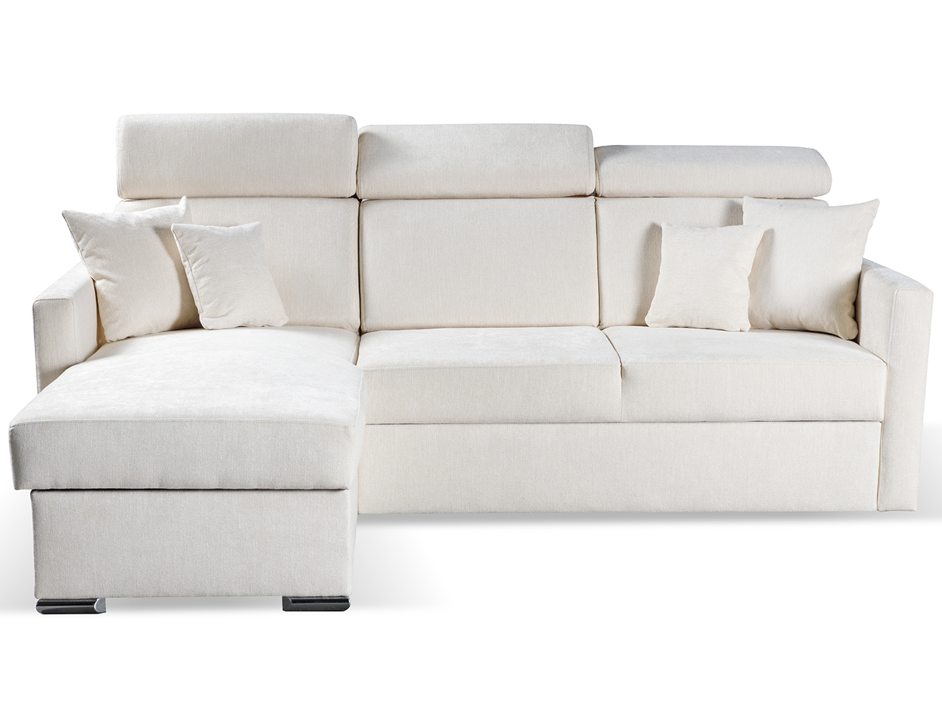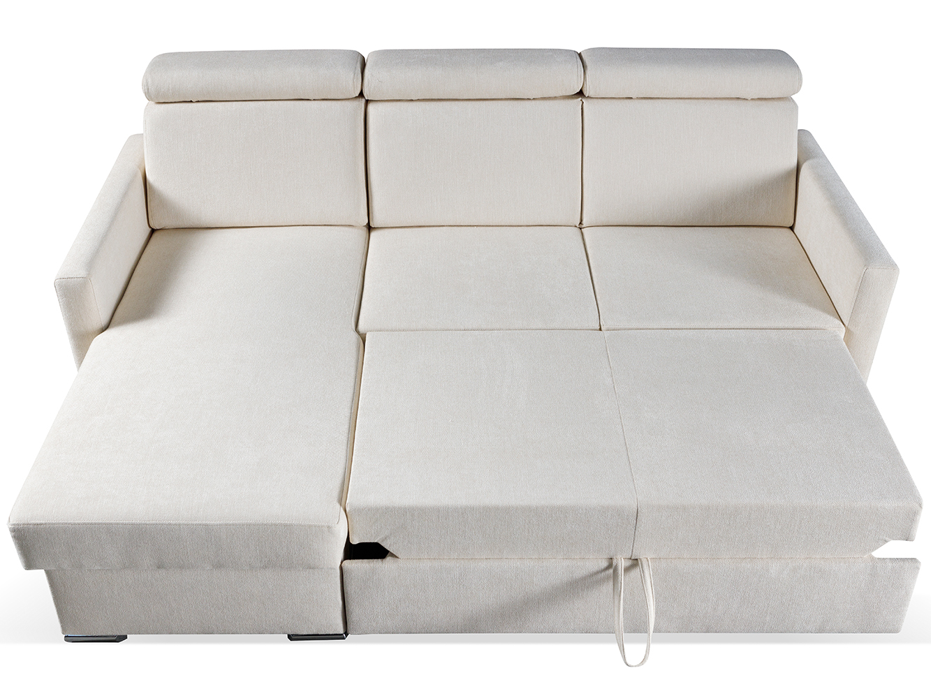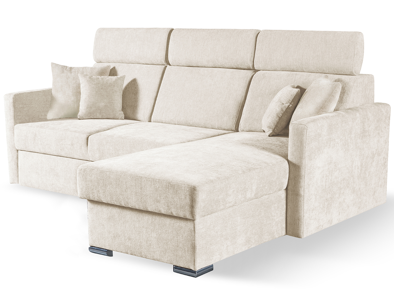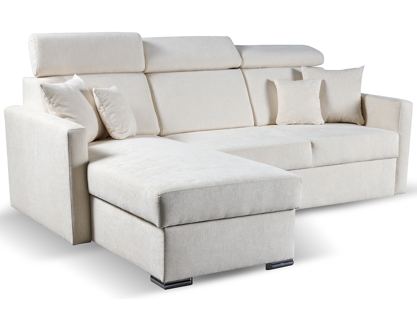 Elegance, pohodlí a nadčasový design, to je rohová rozkládací sedací souprava ROSARIO. Tento hit mezi sedacími soupravami Vám nabízíme v exkluzivním potahovém materiálu, který je díky žinylkové přízi extremně příjemný na omak. Rosario patří do kategoríí tzv. L-kových sedaček univerzálního typu. Kostra sedací soupravy je vyrobena z měkkého a tvrdého dřeva a částečně z dřevotřísky. Pružiny faliste společně s kvalitní polyuretanovou výplňí zajistí pohodlné sezení. Sedací a opěrná část je střední tuhosti, takže vytvoří příjemnou podpěru a zároveň se Vám bude dobře vstávat. Pro větší komfort při relaxaci jsou zádové opěrky opatřeny polohovatelnými záhlavníky, které si nastavíte podle sebe, tak aby se Vám odpočívalo co nejlépe. Zadní část sedací soupravy je očalouněná, takže vypadá velmi pěkně i v otevřeném prostoru. Sedačka se velmi snadno rozkládá a tak můžete během okamžiku vytvořit příležitostné spaní třeba pro hosty. Navíc je rozkládací lůžko počalouněno stejnou potahovou látkou, takže působí vkusně, i když máte sedačku rozloženou. Rosario disponuje i praktickým úložným prostorem z bílého lamina. Úložný prostor je v části pod otomanem, kam můžete schovat např. polštářky nebo deky. Elegantní chromové nohy podtrhují moderní nadčasový design a hodí se tak do každého interiéru. Sedací souprava je univerzální. Umístění otomanu vpravo nebo vlevo si zvolíte až při montáži.