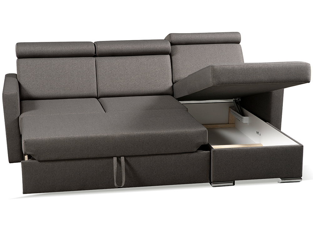 Elegance, funkčnost a trvanlivý design, to je rohová rozkládací sedací souprava SLIM. Součástí této sedací soupravy je i praktický úložný prostor z bílého lamina. Kostra sedací soupravy je vyrobena z měkkého a tvrdého dřeva a částečně z dřevotřísky. Pružiny faliste společně s PUR pěnou zajišťují pohodlné sezení. Provedení sedáku a opěráku je pevné. Opěráky jsou opatřeny polohovatelnými záhlavníky. Umožní Vám tak velice pohodlné sezení. Rozkládání sedací soupravy má funkci rozkladu vysouvací. Rozkládací část je očalouněna stejnou potahovou látkou, jako sedací souprava, což je skvělým benefitem navíc. Sedací souprava je univerzální, není nutné volit stranu provedení.
