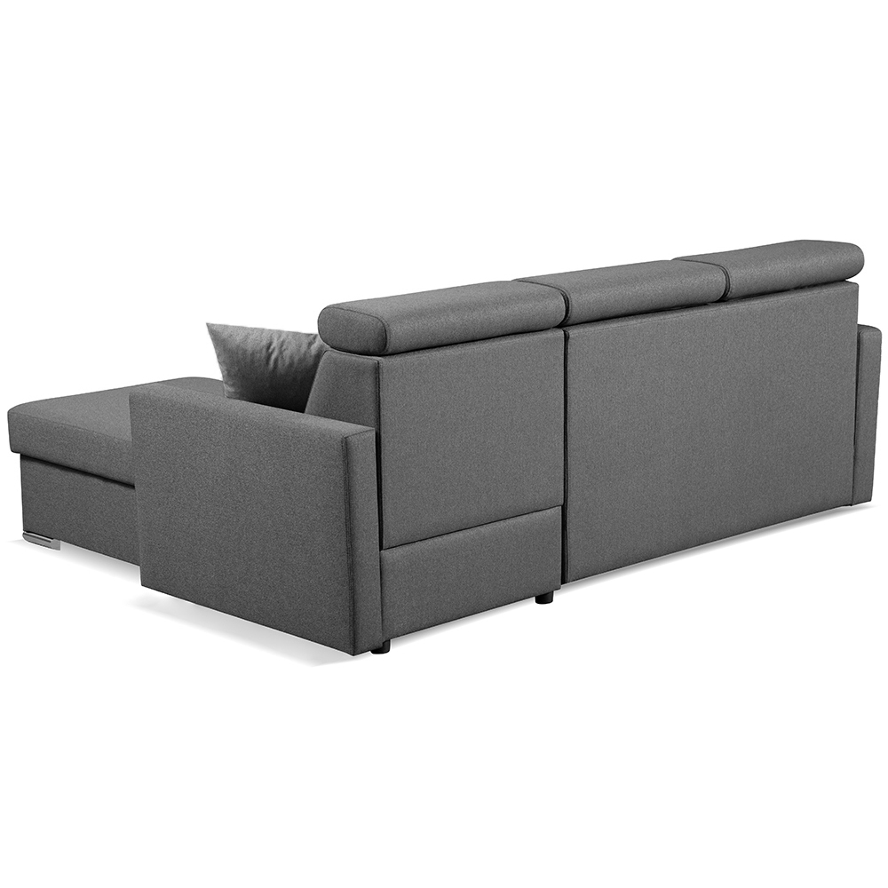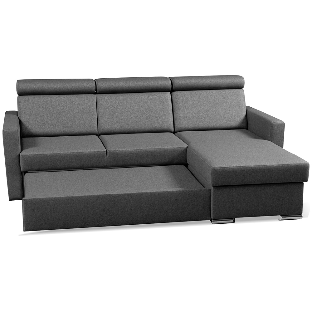 Sedací souprava se snadno rozkládá za pomocí vůzku s matrací a v okamžiku bude připraveno lůžku pro příležitostný spánek. Rozkládací část je navíc jako bonus očalouněná stejnou potahovou látkou, jako sedací souprava. Zajisté využijete i praktický úložný prostor z bílého lamina v části pod otomanem na uschování třeba dek nebo polštářků.
