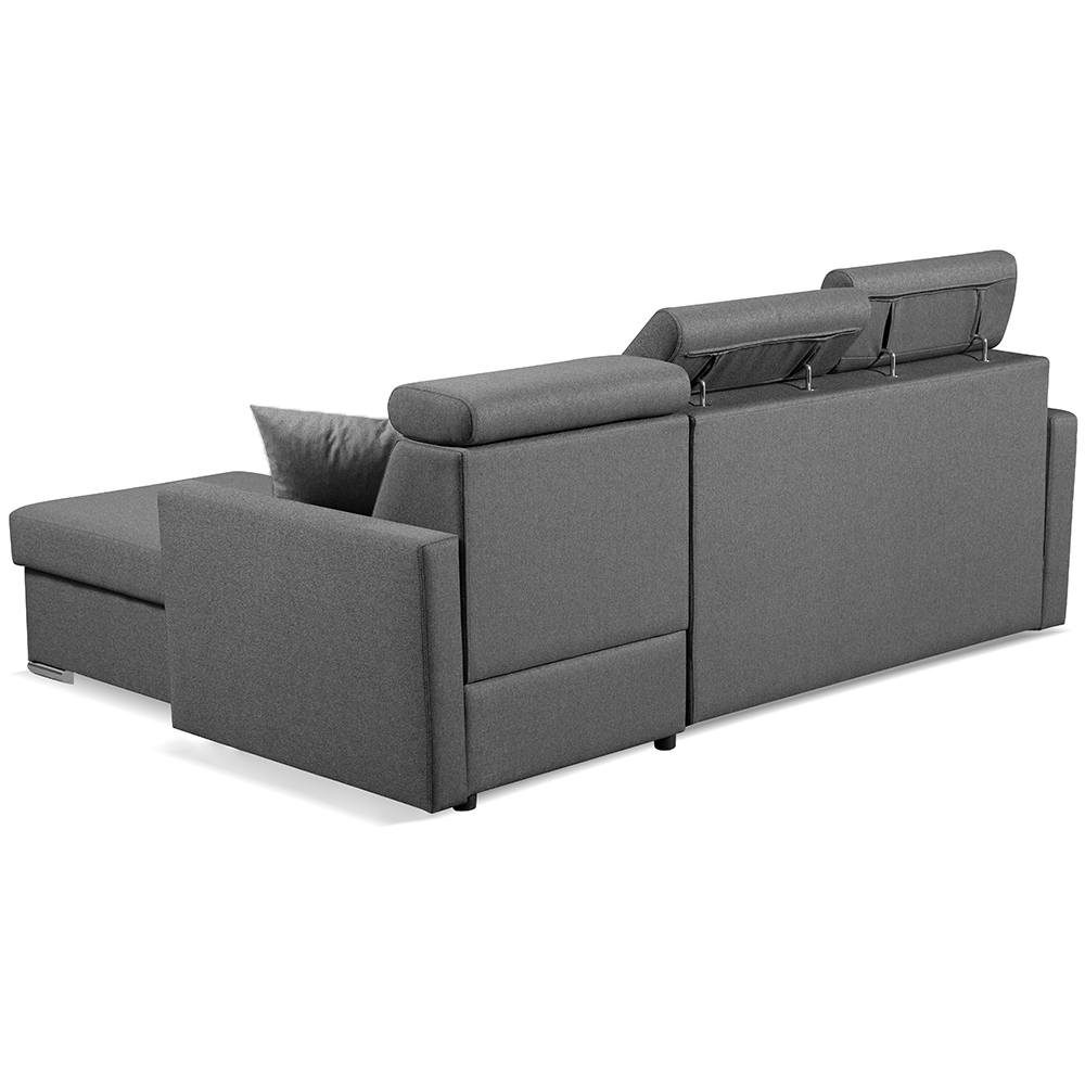 Sedací souprava se snadno rozkládá za pomocí vůzku s matrací a v okamžiku bude připraveno lůžku pro příležitostný spánek. Rozkládací část je navíc jako bonus očalouněná stejnou potahovou látkou, jako sedací souprava. Zajisté využijete i praktický úložný prostor z bílého lamina v části pod otomanem na uschování třeba dek nebo polštářků.