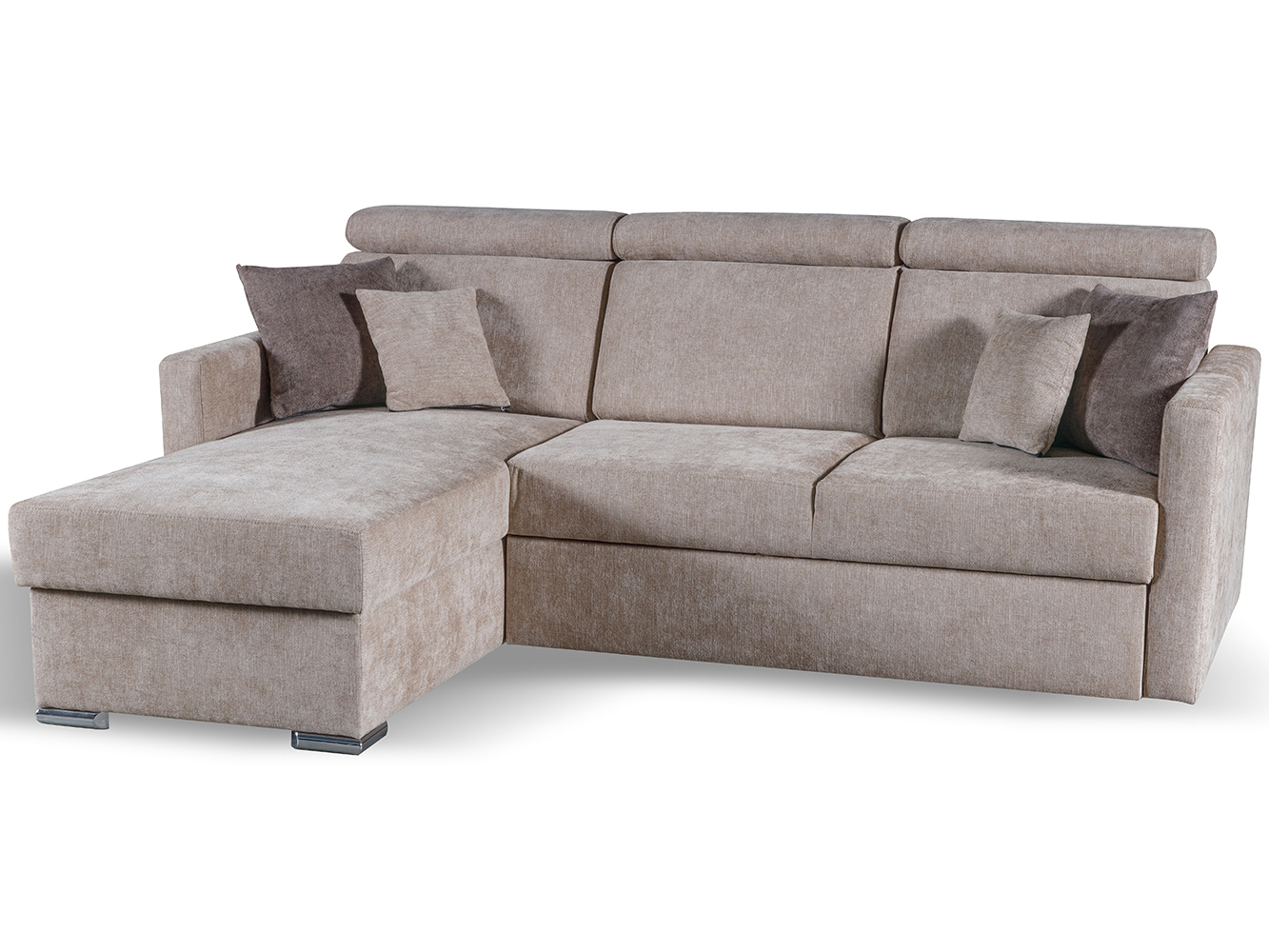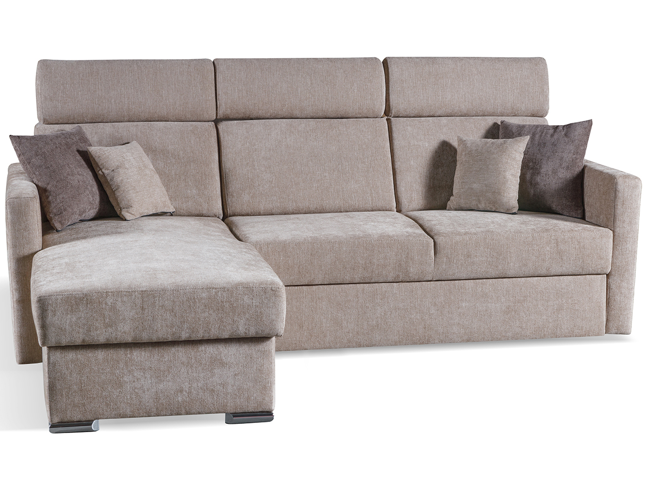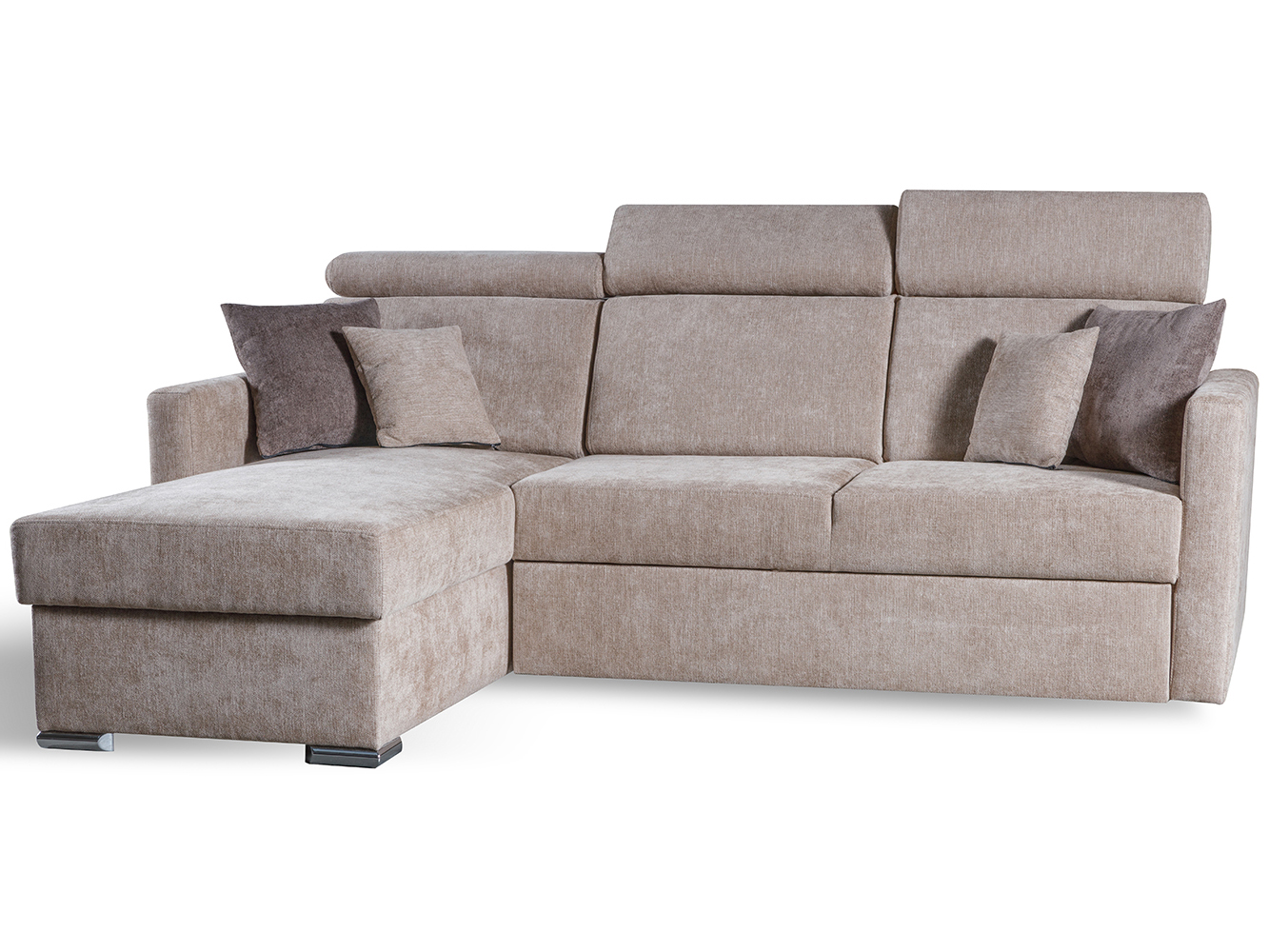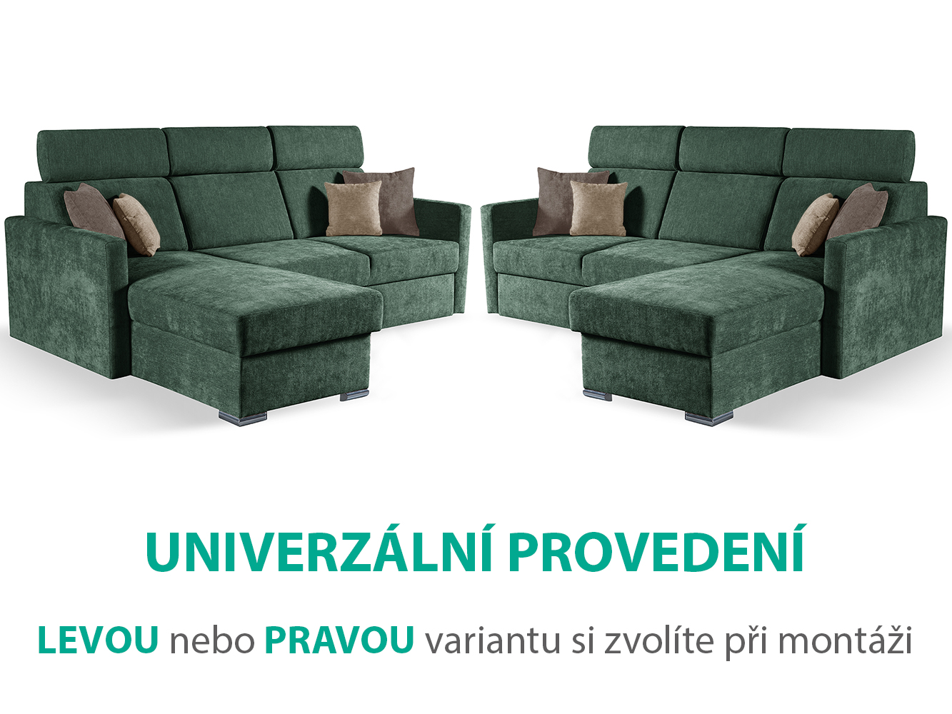 Elegance, pohodlí a nadčasový design, to je rohová rozkládací sedací souprava SLIM ROSARIO. Tento hit mezi sedacími soupravami Vám nabízíme v potahovém materiálu, který je díky žinylkové přízi extrémně příjemný na omak. Rosario patří do kategoríí tzv. L-kových sedaček univerzálního typu. Kostra sedací soupravy je vyrobena z měkkého a tvrdého dřeva a částečně z dřevotřísky. Pružiny faliste společně s kvalitní polyuretanovou výplňí zajistí pohodlné sezení. Sedací a opěrná část je střední tuhosti, takže vytvoří příjemnou podpěru a zároveň se Vám bude dobře vstávat. Pro větší komfort při relaxaci jsou zádové opěrky opatřeny polohovatelnými záhlavníky, které si nastavíte podle sebe, tak aby se Vám odpočívalo co nejlépe. Zadní část sedací soupravy je očalouněná, takže vypadá velmi pěkně i v otevřeném prostoru. Sedačka se velmi snadno rozkládá a tak můžete během okamžiku vytvořit příležitostné spaní třeba pro hosty. Navíc je rozkládací lůžko počalouněno stejnou potahovou látkou, takže působí vkusně, i když máte sedačku rozloženou. Slim Rosario disponuje i praktickým úložným prostorem z bílého lamina. Úložný prostor je v části pod otomanem, kam můžete schovat např. polštářky nebo deky. Elegantní chromové nohy podtrhují moderní nadčasový design a hodí se tak do každého interiéru. Sedací souprava je univerzální. Umístění otomanu vpravo nebo vlevo si zvolíte až při montáži.