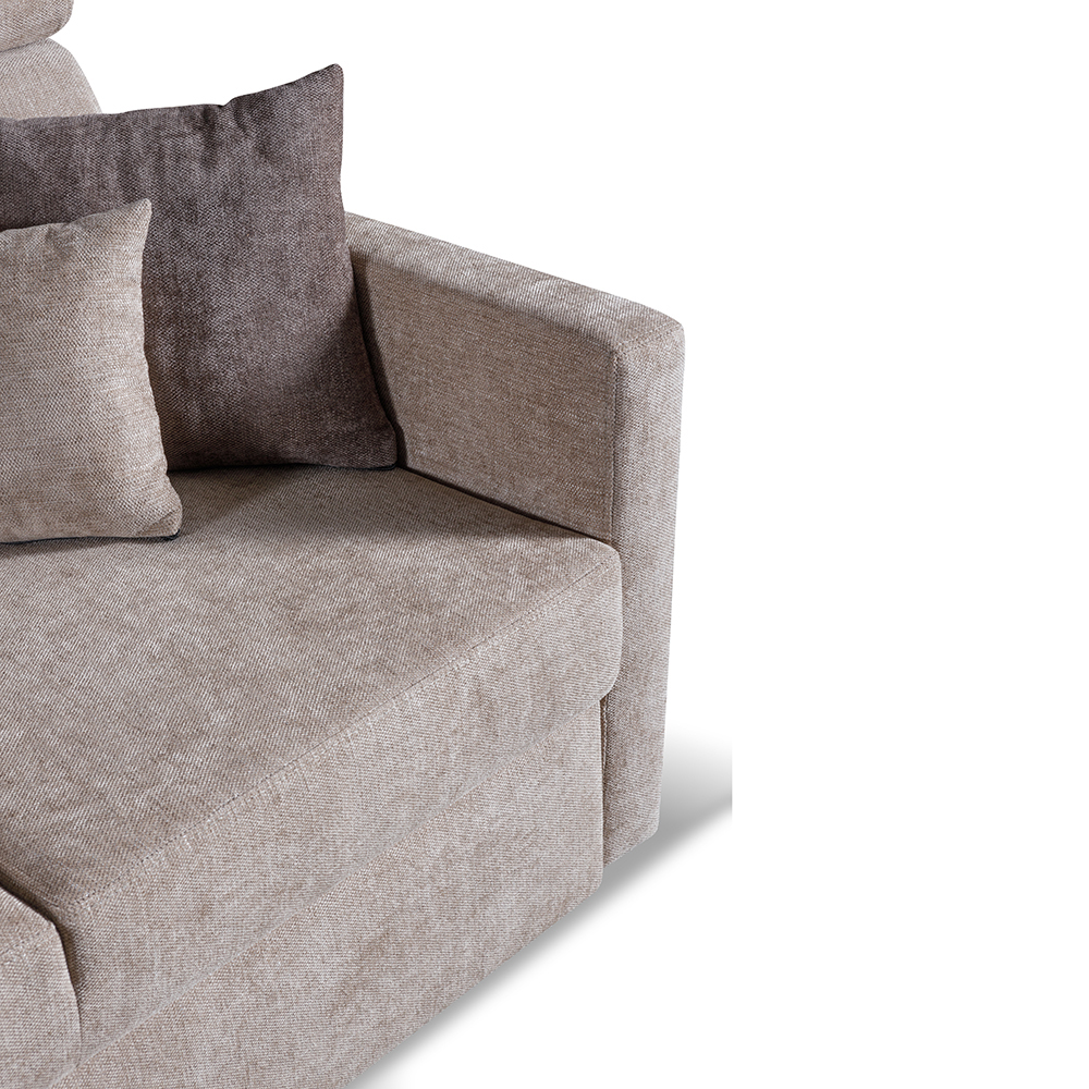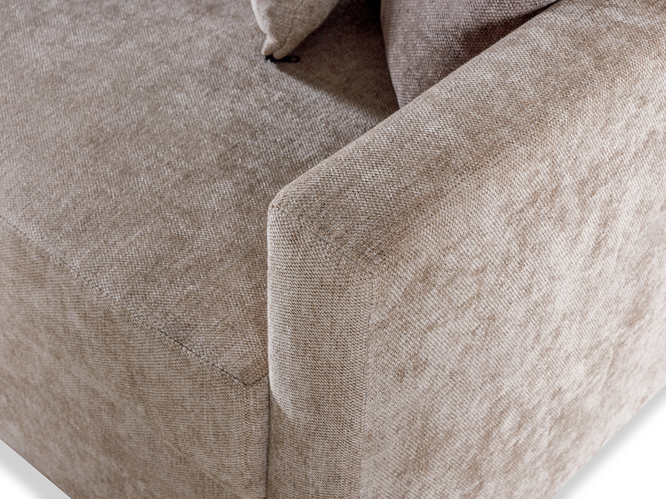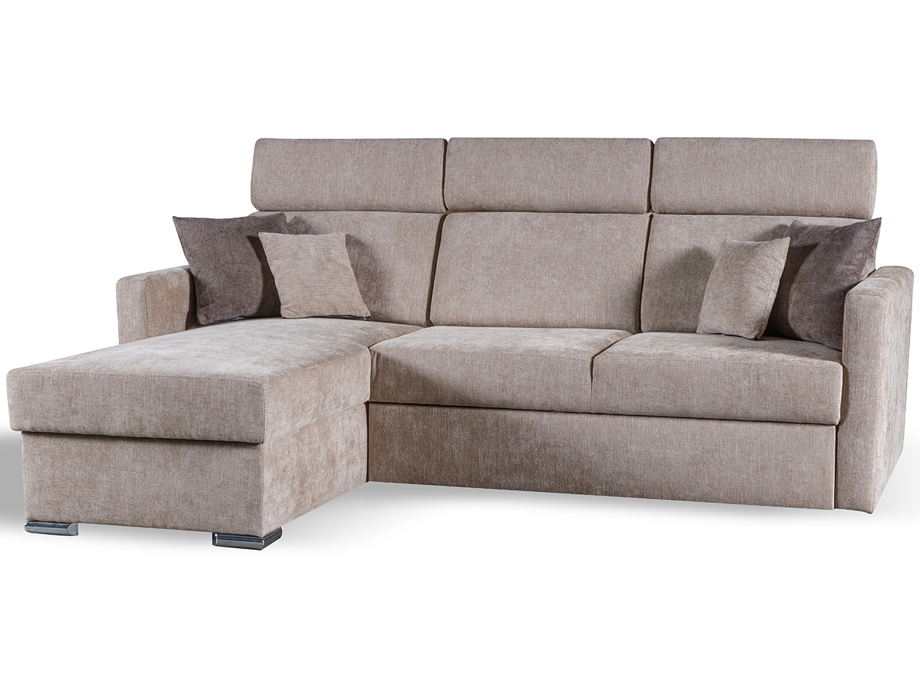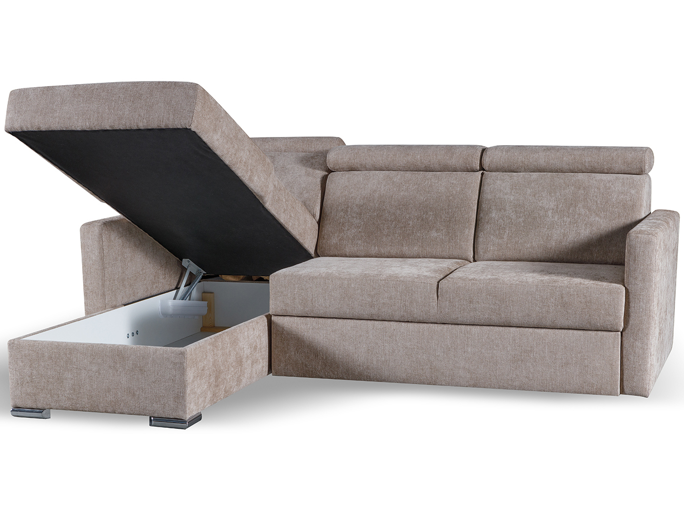Elegance, pohodlí a nadčasový design, to je rohová rozkládací sedací souprava SLIM ROSARIO. Tento hit mezi sedacími soupravami Vám nabízíme v potahovém materiálu, který je díky žinylkové přízi extrémně příjemný na omak. Rosario patří do kategoríí tzv. L-kových sedaček univerzálního typu. Kostra sedací soupravy je vyrobena z měkkého a tvrdého dřeva a částečně z dřevotřísky. Pružiny faliste společně s kvalitní polyuretanovou výplňí zajistí pohodlné sezení. Sedací a opěrná část je střední tuhosti, takže vytvoří příjemnou podpěru a zároveň se Vám bude dobře vstávat. Pro větší komfort při relaxaci jsou zádové opěrky opatřeny polohovatelnými záhlavníky, které si nastavíte podle sebe, tak aby se Vám odpočívalo co nejlépe. Zadní část sedací soupravy je očalouněná, takže vypadá velmi pěkně i v otevřeném prostoru. Sedačka se velmi snadno rozkládá a tak můžete během okamžiku vytvořit příležitostné spaní třeba pro hosty. Navíc je rozkládací lůžko počalouněno stejnou potahovou látkou, takže působí vkusně, i když máte sedačku rozloženou. Slim Rosario disponuje i praktickým úložným prostorem z bílého lamina. Úložný prostor je v části pod otomanem, kam můžete schovat např. polštářky nebo deky. Elegantní chromové nohy podtrhují moderní nadčasový design a hodí se tak do každého interiéru. Sedací souprava je univerzální. Umístění otomanu vpravo nebo vlevo si zvolíte až při montáži.
