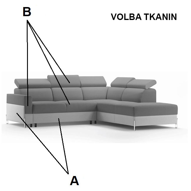 - tkanina A: sedák + zádová opěrva + záhlavníky + vrchní část područek