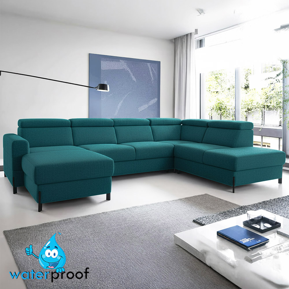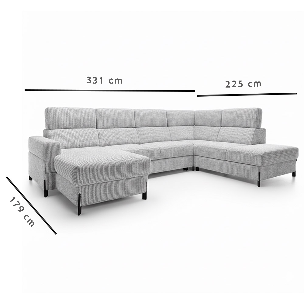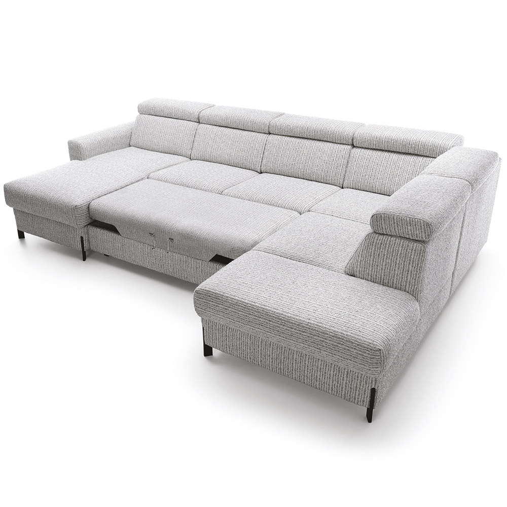 Sedací souprava Ulises ve tvaru U disponuje 2x úložním prostorem, 1x rozkládacím mechanismem na příležitostné přespání a polohovatelnými záhlavníky. Sedací soupravu Vám dodáme v kvalitní tkanině Pisello 11.