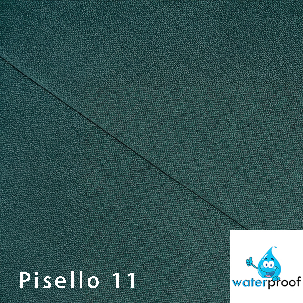 - Tkanina PISELLO je opatřena voděodolná povrchovou úpravou WATERPROOF. Jedná se o ochranný povlak, který poskytuje odolnou a trvanlivou ochranu proti skvrnám od oleje a vody, nečistotám a suchým nečistotám. Tato funkce zabraňuje okamžité absorpci vody tkaninou, což způsobuje kondenzaci kapaliny na povrchu materiálu. Díky tomu máte čas použít jemný hadřík nebo papírovou utěrku k odsátí rozlité kapaliny. Tkanina s vodotěsným systémem vydrží déle a snadněji se čistí.