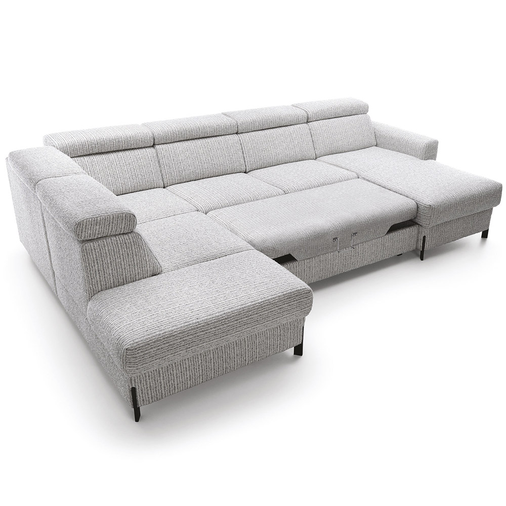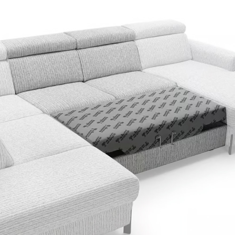 Sedací souprava Ulises ve tvaru U disponuje 2x úložním prostorem, 1x rozkládacím mechanismem na příležitostné přespání a polohovatelnými záhlavníky. Sedací soupravu Vám dodáme v kvalitní tkanině Pisello 11.