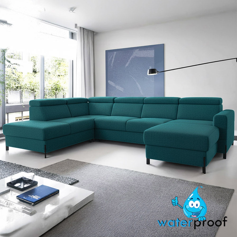 Sedací souprava ULISES U 225x331x179 | rozkládací + úlož. prostor | modrá tyrkysová | VÝBĚR NOŽIČEK
