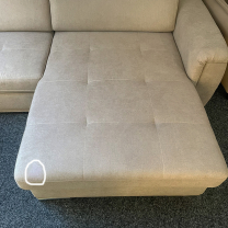 Sedací souprava je u nás na prodejně v Chotovinách vystavená. Je nová, nepoužívaná, pouze má kaz (flíček) látky na otomanu viz. fotografie v galerii.