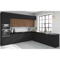 Objevte kuchyňskou linku SIENA, která přináší spojení moderního designu a praktické modularnosti ve stylovém černém provedení. Tato kuchyň je ideálním řešením pro ty, kdo hledají flexibilitu při plánování prostoru a chtějí interiér, který zaujme na první pohled.