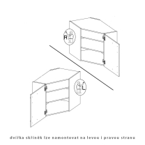 Horní kuchyňská skříňka SIENA rohová 60x60 GN-72 1F (45°) disponuje 2 policemi. Její dvířka mají univerzální provedení a lze je nainstalovat na levou i pravou stranu.