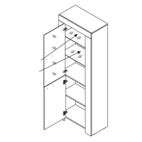 Vitrína SKY SWT70 disponuje 1 policí z lamina a 2 skleněnými policemi. Panty dvířek lze namontovat pouze na levou stranu.