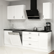 Kuchyňská linka STILO nabízí již předdefinované sestavy i širokou škálu jednotlivých skříněk, ze kterých si snadno naplánujete kuchyni podle svých představ a potřeb. Stilo nabízíme ve velice moderním a žádaném odstínu matné bílé. Dvířka zdobí prolisy a kovové úchyty v černé barvě.