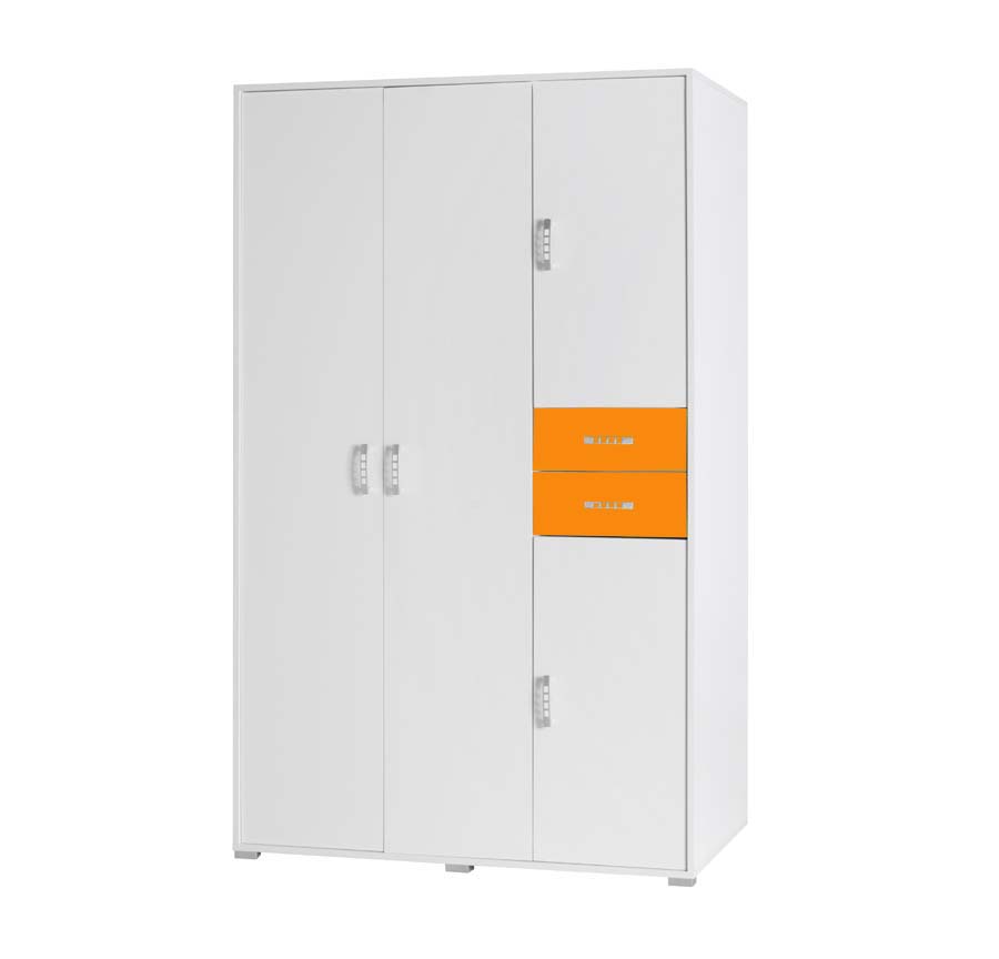 Šatní skříň 1 - Studentský/Dětský pokoj Nemo je ideální pro děti v každém věku. Tato kolekce prosvětlí a osvěží dětské prostory a vytvoří tak příjemné prostředí, jak na hraní, tak i na učení. Nábytek je vyroben z kvalitní laminátové dřevotřísky v atraktivním odstínu bílá/oranžová lesk. Zboží Vám dodáme v demontu s návodem na sestavení a kováním.