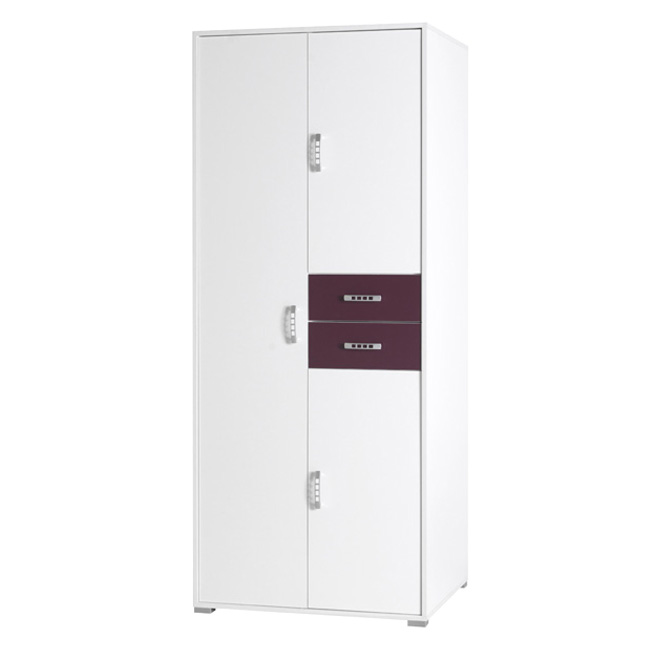 Šatní skříň 2 - Studentský/Dětský pokoj Nemo je ideální pro děti v každém věku. Tato kolekce prosvětlí a osvěží dětské prostory a vytvoří tak příjemné prostředí, jak na hraní, tak i na učení. Nábytek je vyroben z kvalitní laminátové dřevotřísky v atraktivním odstínu bílá/fialová lesk. Zboží Vám dodáme v demontu s návodem na sestavení a kováním.