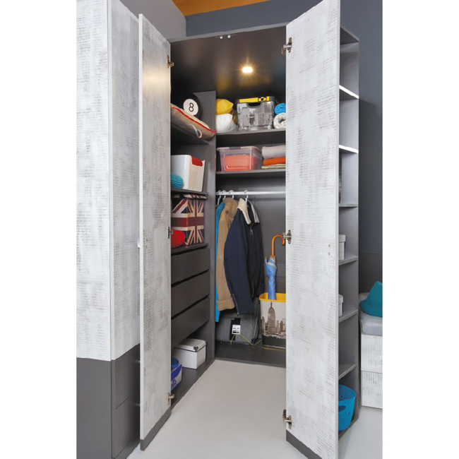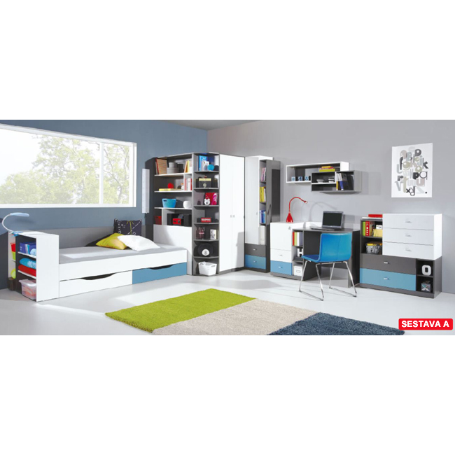 Osvětlení do skříně TA1 - Studenstký/dětský pokoj Tablo představuje moderní nábytkový systém. Pokoj je vhodný pro školáky i pro děti předškolního věku. Díky jednolivým elementům si lze sestavit pokojíček podle svých představ. Kolekci Tablo nabízíme v atraktivní barevné kombinaci grafit/bílá lux/modrá. Nábytek je vyroben z kvalitní laminátové dřevotřísky s ochranou ABS hranou o síle 16 mm. Zboží Vám dodáme v demontu s návodem na sestavení a kováním.