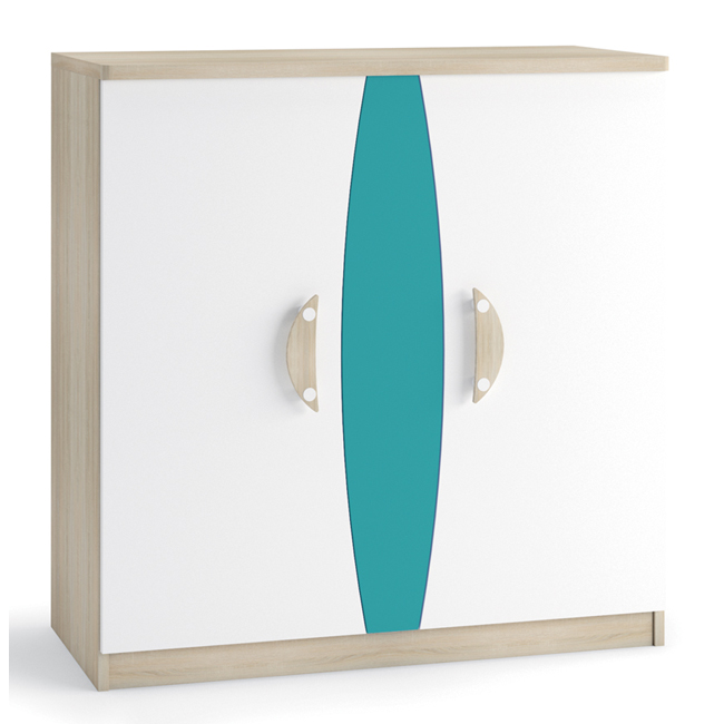 Komoda K2D - Dětský pokoj Tenus II prosvětlí a osvěží pokojíčky Vašich dětí. Nábytek je vhodný do menších i větších pokojů. Kolekci nabízíme v atraktivních kombinacích dub sonoma/bílá/růžová nebo dub sonoma/bílá/tyrkys. Nábytek je vyroben z kvalitní laminátové dřevotřísky. Zboží Vám doručíme v demontu s návodem na sestavení a kováním.