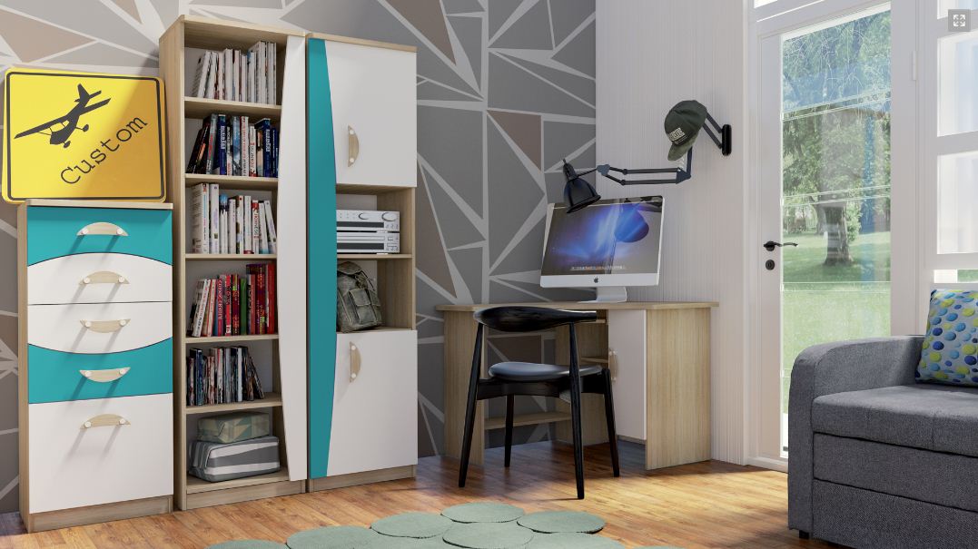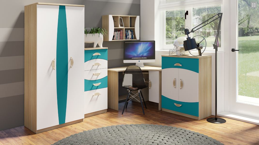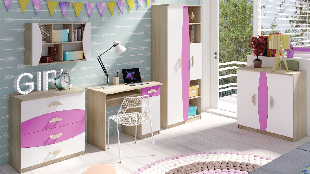 Regál R2D50 - Dětský pokoj Tenus II prosvětlí a osvěží pokojíčky Vašich dětí. Nábytek je vhodný do menších i větších pokojů. Kolekci nabízíme v atraktivních kombinacích dub sonoma/bílá/růžová nebo dub sonoma/bílá/tyrkys. Nábytek je vyroben z kvalitní laminátové dřevotřísky. Zboží Vám doručíme v demontu s návodem na sestavení a kováním.
