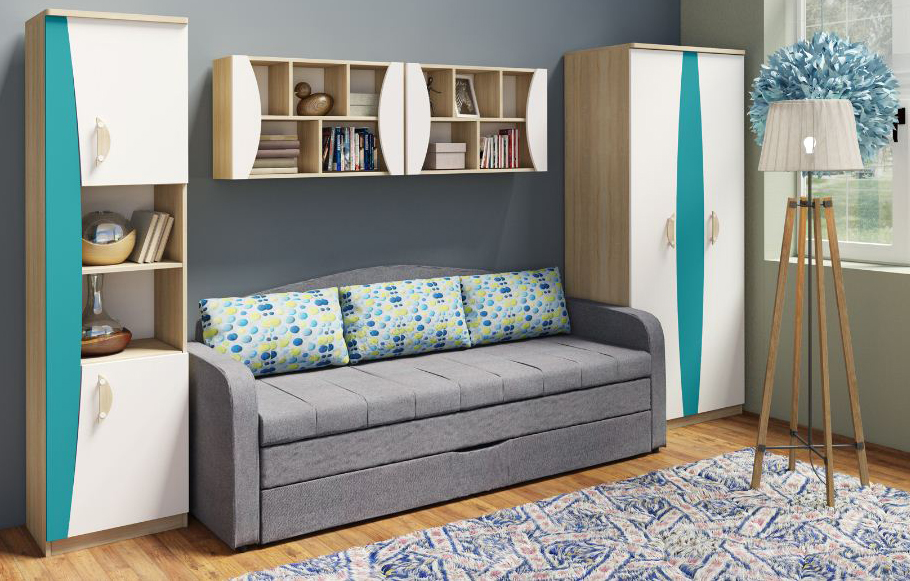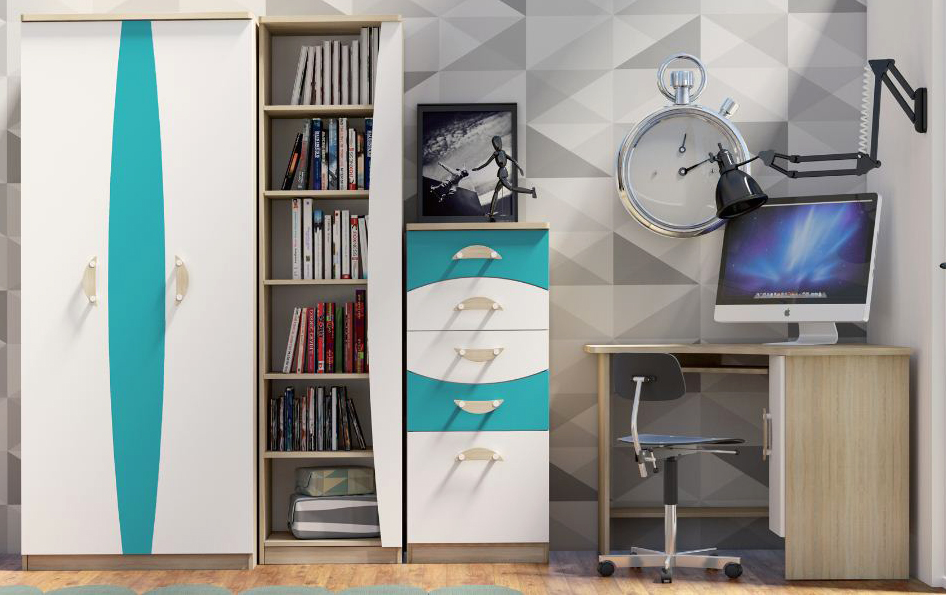 Regál R50 - Dětský pokoj Tenus II prosvětlí a osvěží pokojíčky Vašich dětí. Nábytek je vhodný do menších i větších pokojů. Kolekci nabízíme v atraktivních kombinacích dub sonoma/bílá/růžová nebo dub sonoma/bílá/tyrkys. Nábytek je vyroben z kvalitní laminátové dřevotřísky. Zboží Vám doručíme v demontu s návodem na sestavení a kováním.