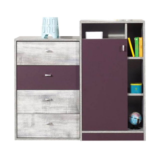 Komoda ZM7 - Studentský/dětský pokoj Zoom patří mezi naše novinky. Tato kolekce vyniká svým moderním designem a funkčností. Obzvláště dvě rohové šatní skříně ZM1 a ZM2 prakticky řeší úložný prostor. Nábytek je vyroben z kvalitní laminátové dřevotřísky v netradiční barevné kombinaci Hong kong/lilková. Pokojíček si lze objednat jako celek, nebo jako jednotlivé díly. Zboží Vám dodáme v demontu s návodem na sestavení a kováním.