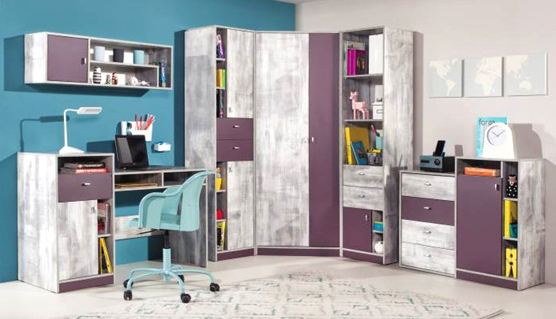 Regál ZM6 - Studentský/dětský pokoj Zoom patří mezi naše novinky. Tato kolekce vyniká svým moderním designem a funkčností. Obzvláště dvě rohové šatní skříně ZM1 a ZM2 prakticky řeší úložný prostor. Nábytek je vyroben z kvalitní laminátové dřevotřísky v netradiční barevné kombinaci Hong kong/lilková. Pokojíček si lze objednat jako celek, nebo jako jednotlivé díly. Zboží Vám dodáme v demontu s návodem na sestavení a kováním.
