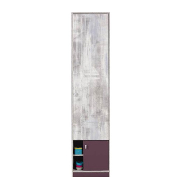 Šatní skříň ZM4 - Studentský/dětský pokoj Zoom patří mezi naše novinky. Tato kolekce vyniká svým moderním designem a funkčností. Obzvláště dvě rohové šatní skříně ZM1 a ZM2 prakticky řeší úložný prostor. Nábytek je vyroben z kvalitní laminátové dřevotřísky v netradiční barevné kombinaci Hong kong/lilková. Pokojíček si lze objednat jako celek, nebo jako jednotlivé díly. Zboží Vám dodáme v demontu s návodem na sestavení a kováním.
