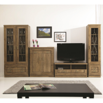 - Kolekce TADEUSZ nabízí předdefinované sestavy i samostatné prvky, ze kterých si snadno vybavíte obývací pokoj, ložnici i další místnosti. Tmavší, příjemný dekor dub lefkas vnese do interiéru teplo.