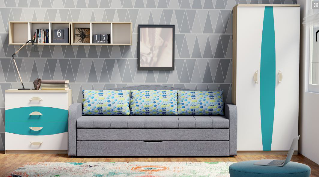 Tenus II - jednolůžko s úložným prostorem - tyrkys
