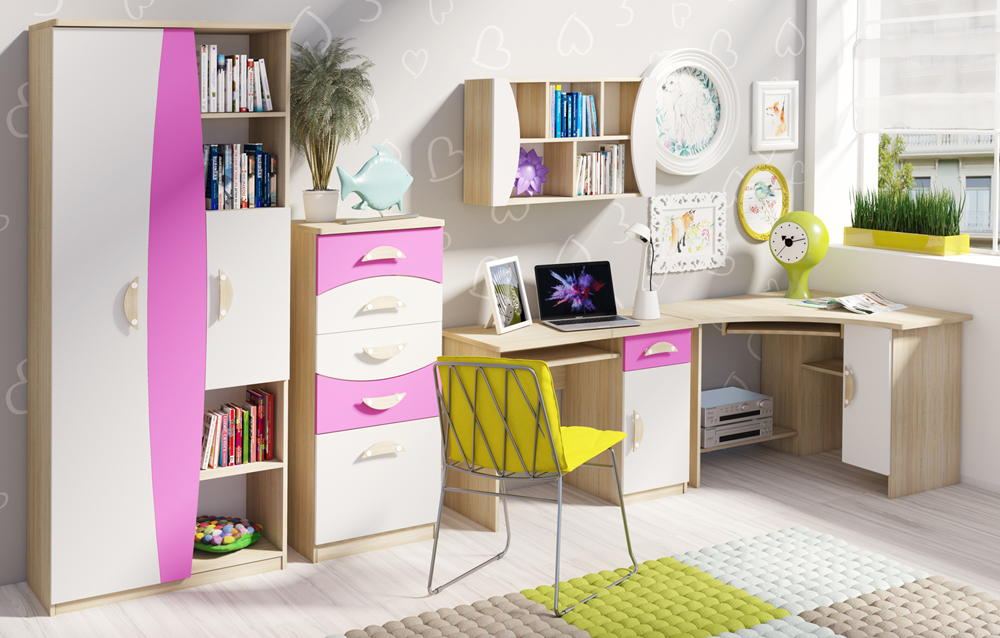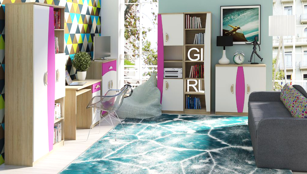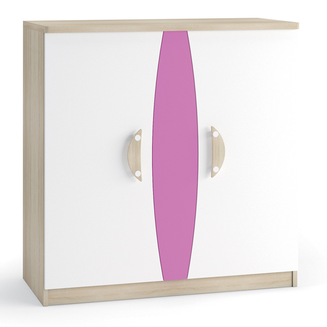 Komoda K2D - Dětský pokoj Tenus II prosvětlí a osvěží pokojíčky Vašich dětí. Nábytek je vhodný do menších i větších pokojů. Kolekci nabízíme v atraktivních kombinacích dub sonoma/bílá/růžová nebo dub sonoma/bílá/tyrkys. Nábytek je vyroben z kvalitní laminátové dřevotřísky. Zboží Vám doručíme v demontu s návodem na sestavení a kováním.
