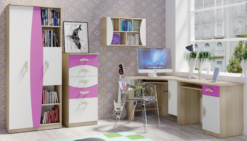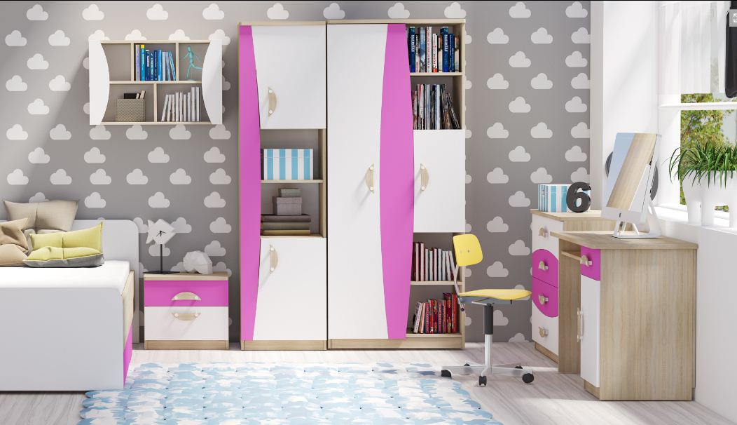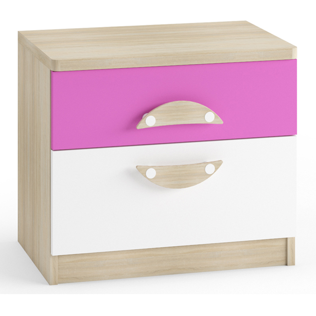 Noční stolek - Dětský pokoj Tenus II prosvětlí a osvěží pokojíčky Vašich dětí. Nábytek je vhodný do menších i větších pokojů. Kolekci nabízíme v atraktivních kombinacích dub sonoma/bílá/růžová nebo dub sonoma/bílá/tyrkys. Nábytek je vyroben z kvalitní laminátové dřevotřísky. Zboží Vám doručíme v demontu s návodem na sestavení a kováním.