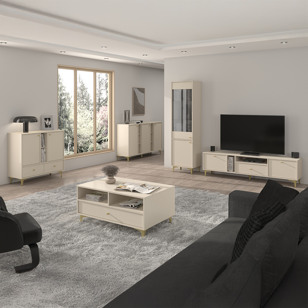 - Obývací kolekce TOKYO zaujme už na první pohled. Béžová v matném provedení v kombinaci se zlatými kovovými úchytkami a nožičkami působí sebevědomě, luxusně a přitom elegantně střídmě.