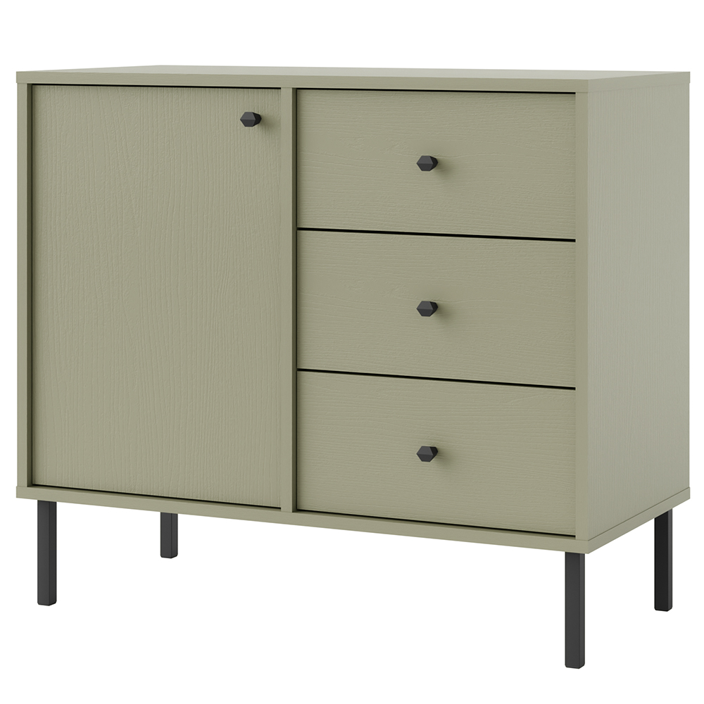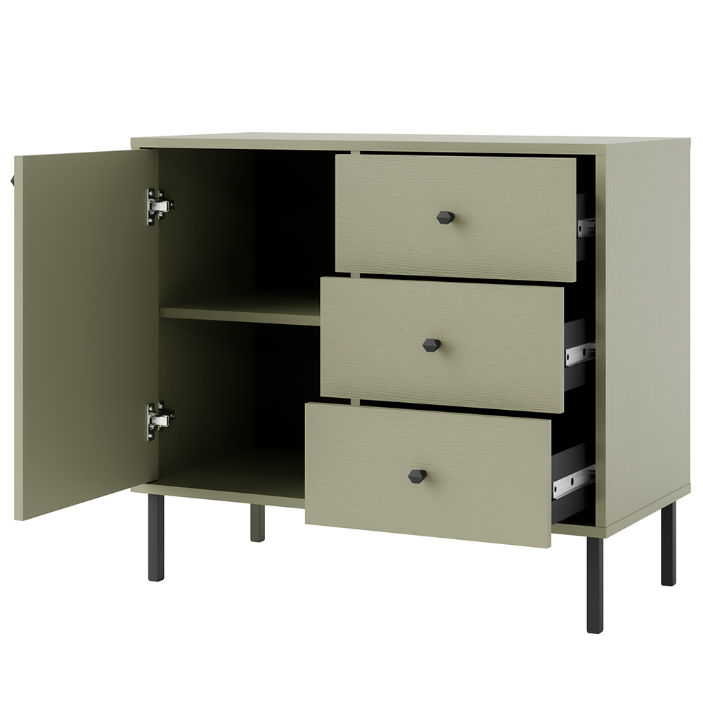 Komoda TOKYO 2 814 disponuje 3x zásuvkou a 1x policí za dvířky.