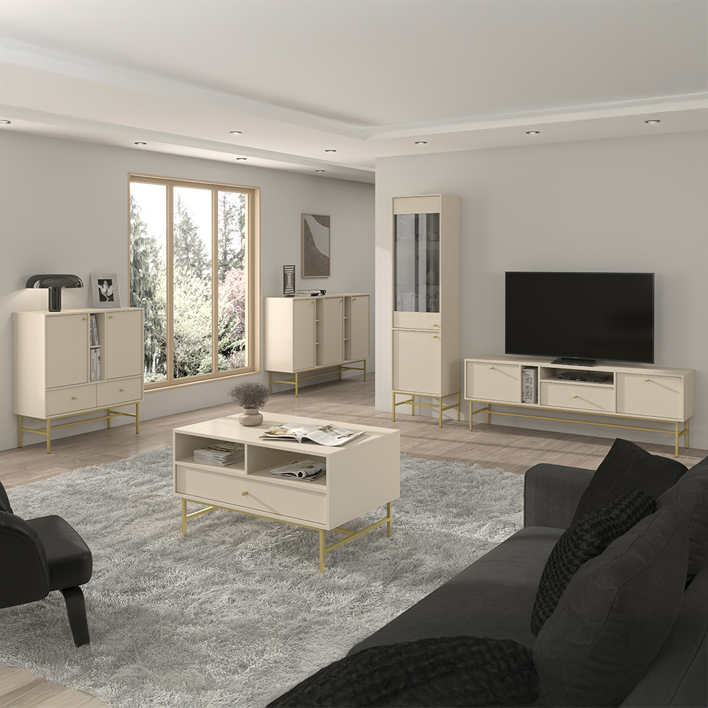 - Obývací kolekce TOKYO zaujme už na první pohled. Béžová v matném provedení v kombinaci se zlatými kovovými úchytkami a nožičkami působí sebevědomě, luxusně a přitom elegantně střídmě.