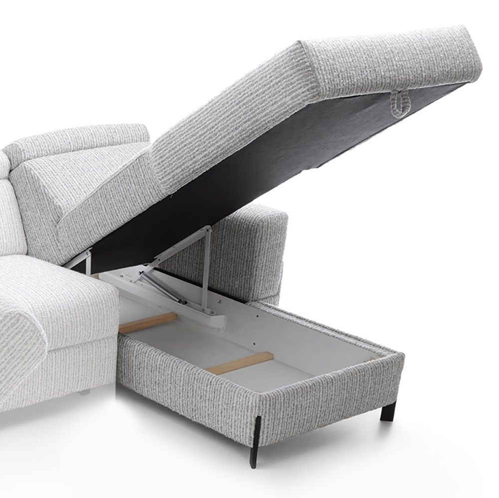 - Pro maximální komfort jsou k dispozici polohovatelné záhlavníky se čtyřmi úrovněmi nastavení. Přizpůsobte si opěrku hlavy tak, abyste dosáhli ideální polohy pro relaxaci či sledování televize. Některé moduly navíc disponují rozkladem pro příležitostné přespání nebo úložným prostorem pro deky i polštáře, které chcete mít hned po ruce.