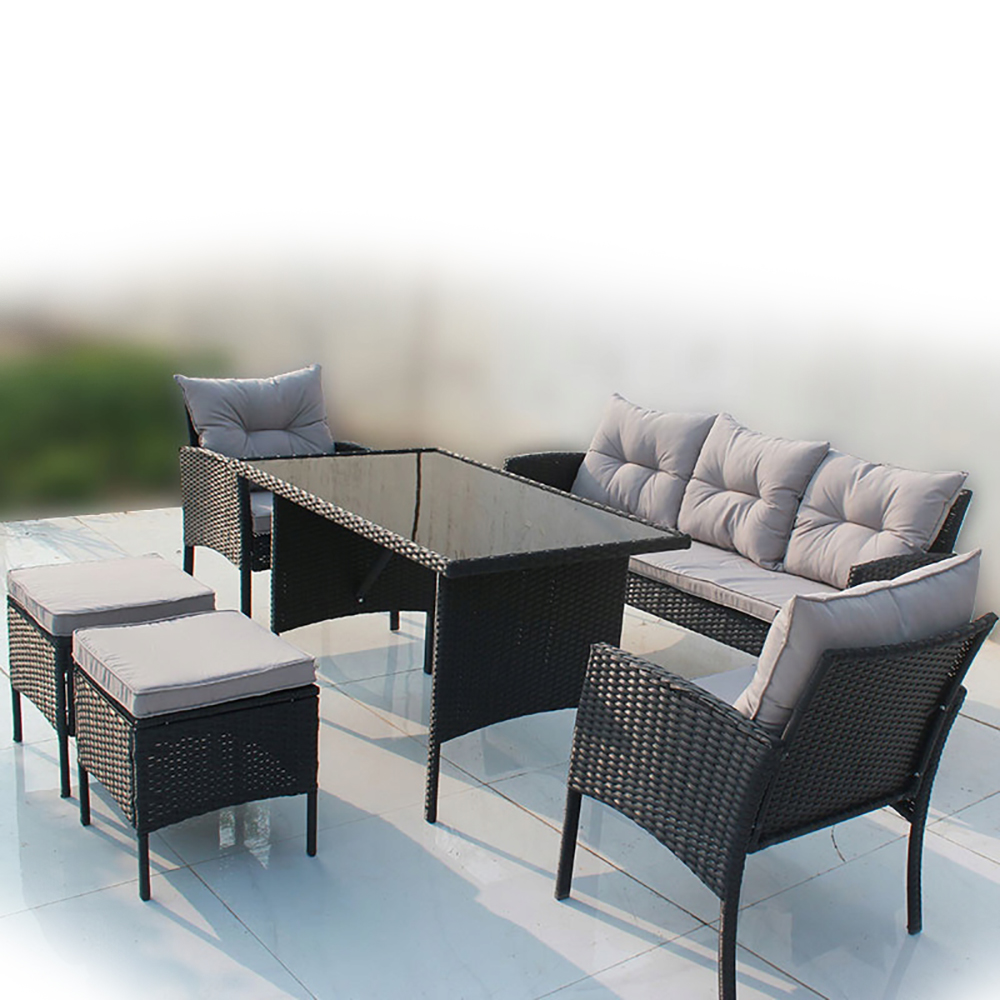 Zahradní sestava k sezení GERY pohovka + 2 křesla + 2 taburety + stolek | PE ratan | černá/šedá | ABI7541