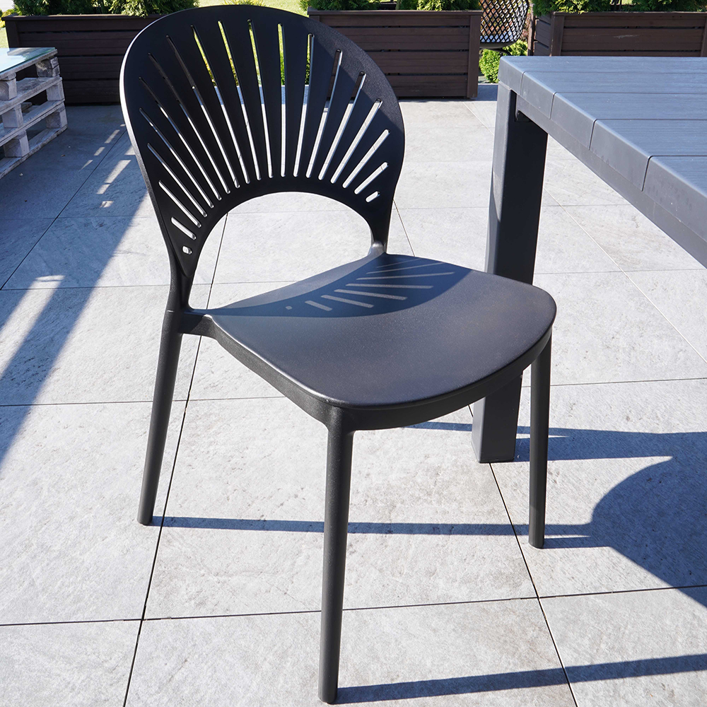 Židle je vyrobena z odolného polypropylenu, který je omyvatelný a vhodný pro venkovní použití. Díky tomu je ideální volbou pro terasy, zahradní posezení i komerční provozy. Materiál nevyžaduje složitou údržbu a snadno odolává povětrnostním vlivům.