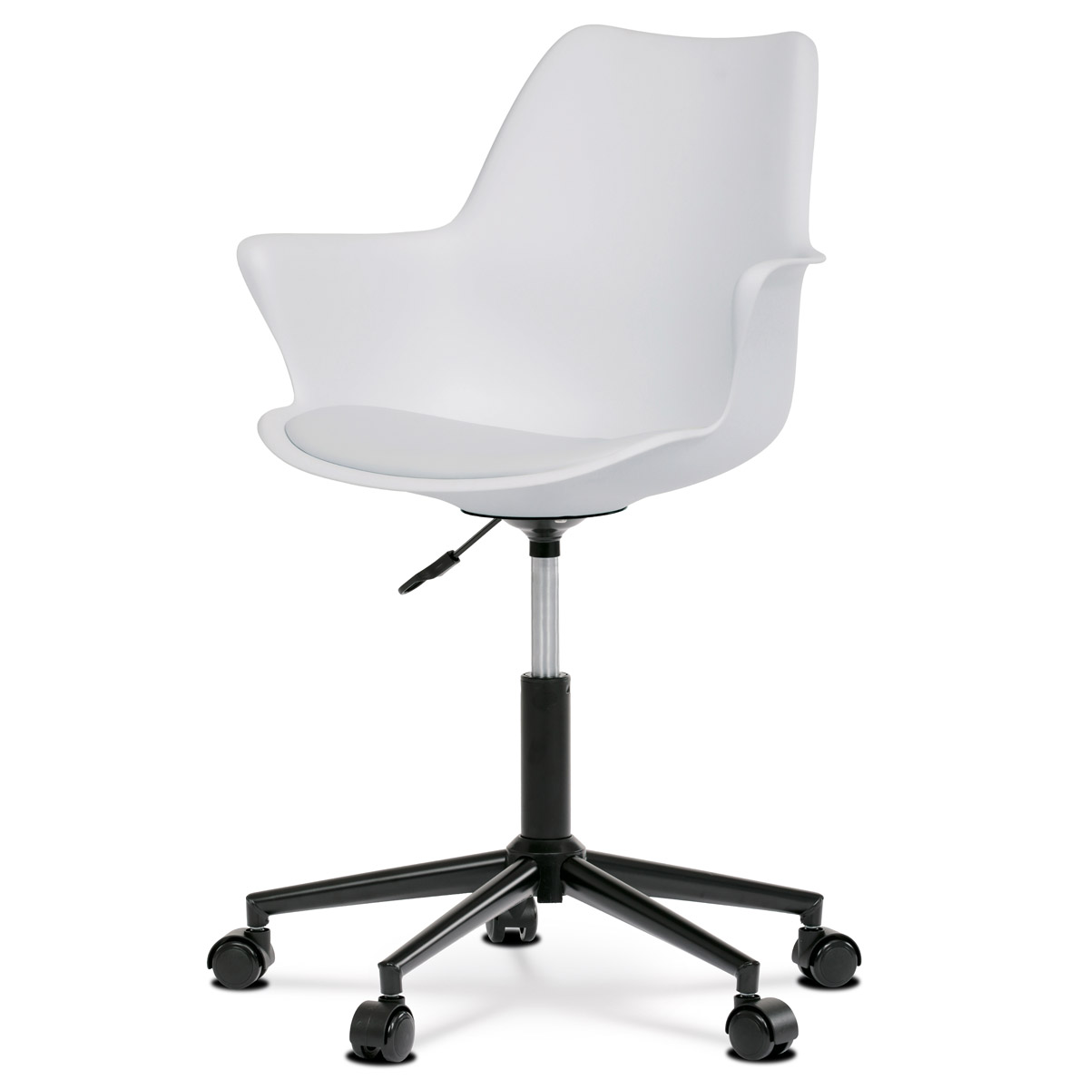 Moderní kancelářská židle Autronic v elegantním bílém provedení je ideálním řešením pro pracovní i konferenční místnosti. Ergonomicky tvarované sedadlo s pevnými područkami poskytuje komfort při delším sezení. Výškově nastavitelný sedák zajistí správné nastavení podle vašich potřeb. Kovový černý kříž a kvalitní kolečka na tvrdé povrchy zaručují stabilitu a snadnou manipulaci. Sedák z hladké ekokůže nejen vypadá, ale také se snadno udržuje. Tento stylový model se hodí do moderních kancelářských prostor a přispěje k pohodlí při práci
